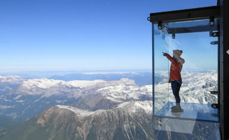 The Step into the Void consists of five panels of three layers of glass. In order to preserve the impressive clarity of the glass, you will put on big slippers. Are you wondering about the security of the site? Don't worry, reinforced glazing is resistant to winds of 220 kilometers per hour as well as temperatures below 40 degrees. Also, the spectacular glass cage ofAiguille du Midi is capable of supporting 1500 kilos. The Step into the Void is designed to cope with all the climatic conditions of the Aiguille du Midi all year round.