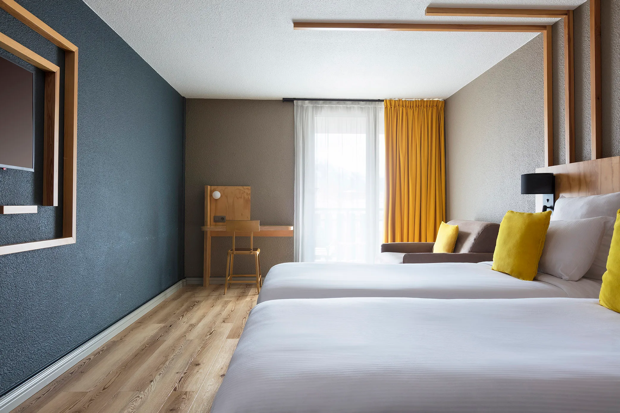 Pensée pour s’adapter à toutes les envies de séjour — en solo, en duo ou en famille jusqu’à 4 personnes — la Junior Suite offre un bel espace de vie avec un balcon privé pour profiter pleinement de l’air pur des montagnes.