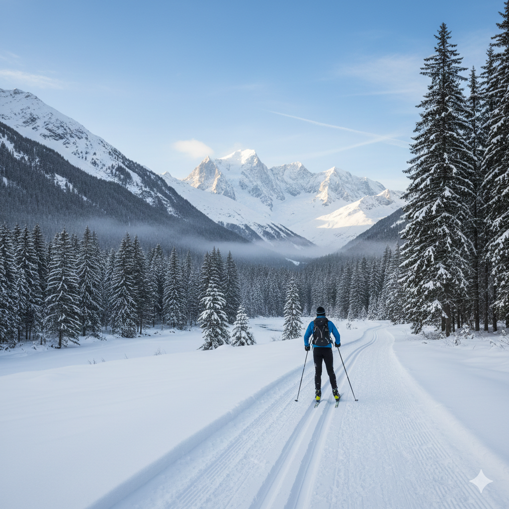 - Le ski de fond à Chamonix offre une découverte calme de la vallée, avec des parcours variés entre forêts, rivière et panoramas sur le Mont-Blanc.
